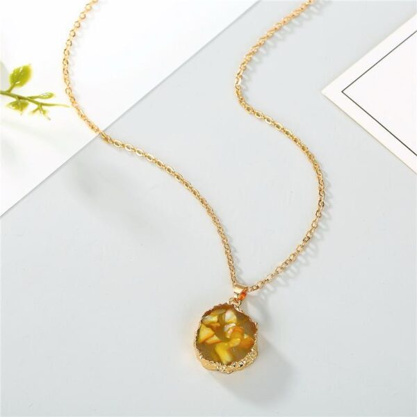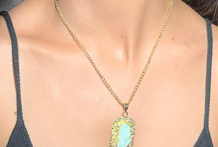 The gold-colored body enhances the natural beauty of the aventurine stone, creating a sophisticated and timeless design that complements both casual and formal outfits. Whether you’re drawn to the stone’s calming energy or simply love its mesmerizing green hue, this necklace makes a stylish and meaningful addition to your jewelry collection.