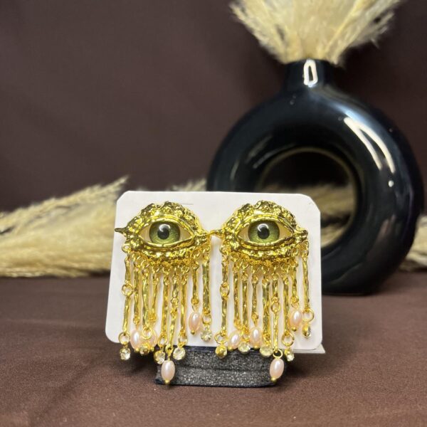 The high-quality zirconia stones embedded in the design add a luxurious sparkle, catching the light with every movement and enhancing the overall aesthetic of the piece. Whether you’re dressing up for a glamorous evening or adding a touch of personality to your daily look, these earrings are designed to be versatile, offering both style and significance. The long chains attached to the earrings provide an added sense of movement, making them perfect for special occasions or adding an edge to your everyday ensemble.