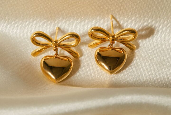 Distinctive heart-shaped hoop design with golden stainless steel shine