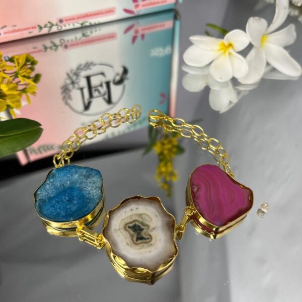 - Elegant Design: Vibrant blue hues with gold pyrite specks