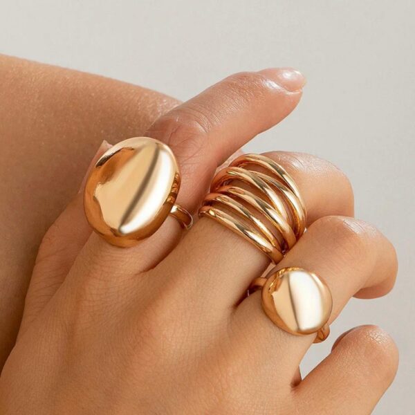 The set includes four different designs that cater to varying tastes and preferences, making it an ideal choice for those who love mixing and matching jewelry pieces. The durability of the steel and alloy ensures these rings maintain their shine and sturdiness over time. Their lightweight construction ensures comfort throughout the day, while the gold tone exudes timeless luxury.