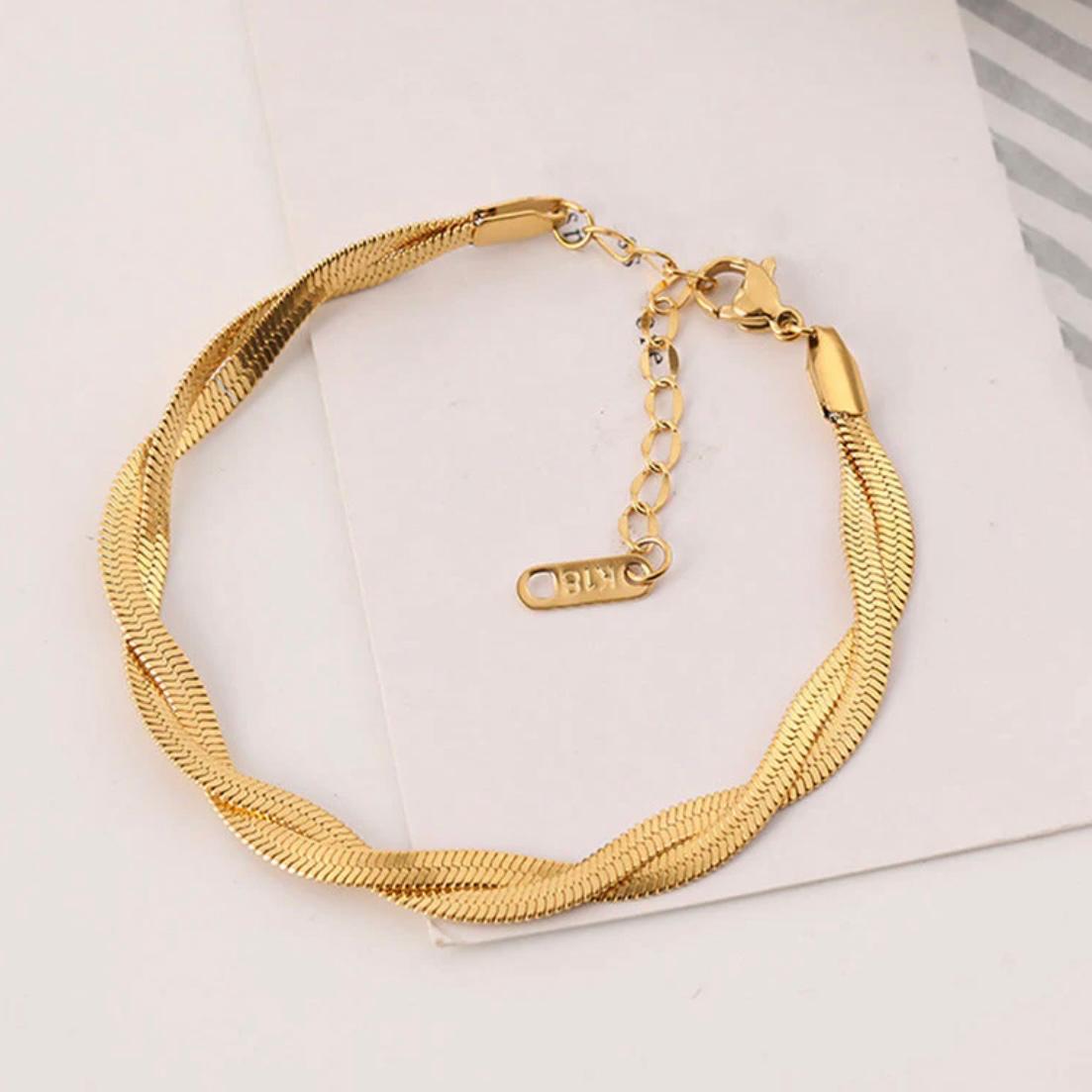 This dual snake chain bracelet is a timeless piece that adds a refined touch to any wardrobe.