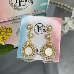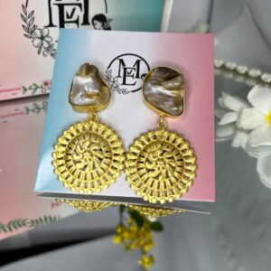 Elevate your jewelry collection with our exquisite Mother of Pearl Cut Stone Earrings, set in a stunning golden brass body. These elegant earrings feature natural iridescent Mother of Pearl, radiating a soft, luminous glow that complements any outfit. The intricate brass framework adds a vintage yet contemporary charm, making them perfect for both casual and formal occasions.