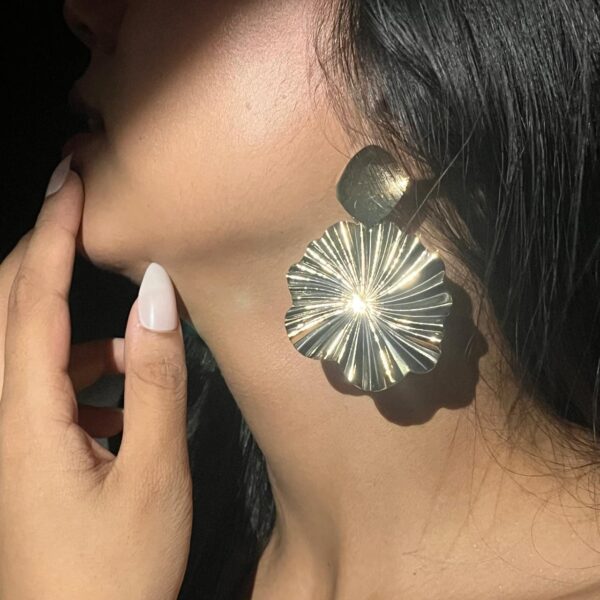 Crafted from high-quality golden stainless steel, these earrings are not only durable but also resistant to tarnishing, ensuring they retain their radiant glow for years to come. The stainless steel body ensures the earrings are hypoallergenic, making them ideal for those with sensitive skin, and their lightweight construction means they’re comfortable to wear all day, whether at work, a casual outing, or a special occasion.