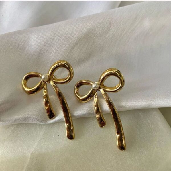 The stunning golden hue of these earrings makes them a versatile addition to any jewelry collection, effortlessly transitioning from daytime chic to evening elegance. Whether you’re dressing up for a night out or adding a touch of glamour to your everyday ensemble, these snake chain bow earrings are designed to catch the eye and make a statement.